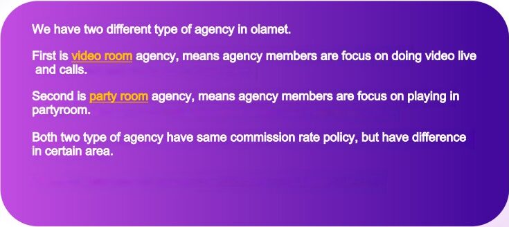 1. If the agency is an partyroom Agency, Agents can have extra rewards from party room’s regular gifts income.