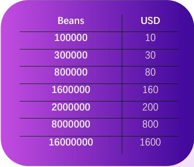 2. Video call Prices range from 1.800 beans/minute to 26.000 beans/minute, The hostes can set any price she thinks the caller can afford, Additionally beans can be earned by receiving